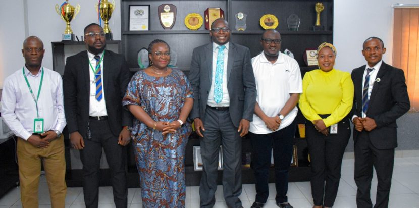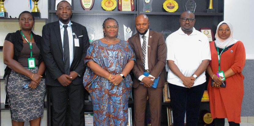 Executive Chairman, KW-IRS, Shade Omoniyi (3rd left), Director, Admin & Operations, KW-IRS, Olatunji Balogun,Head Road Taxes,KW-IRS in a group photograph with the team from National Insurance Commission(NAICOM) during a courtesy visit to the Kwara State Revenue House on Thursday.