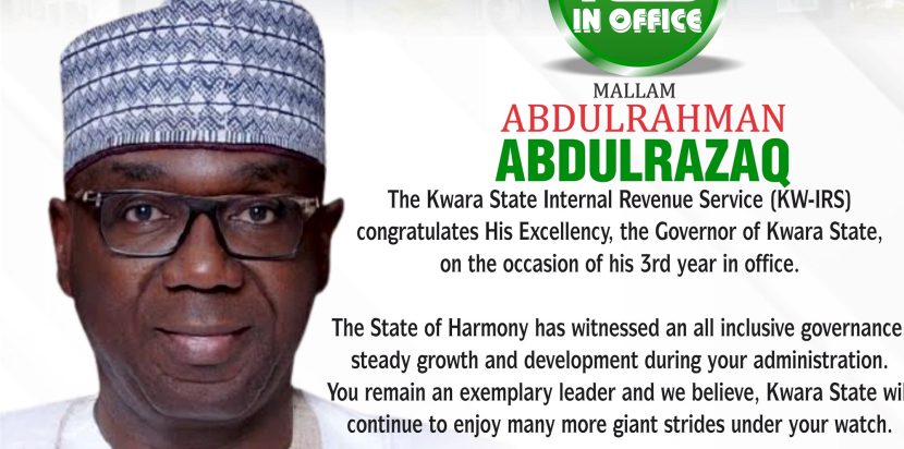 Hearty Congratulations, His Excellency, Governor Abdulrahman Abdulrazaq the Executive Governor of Kwara State on your 3rd Year in office.